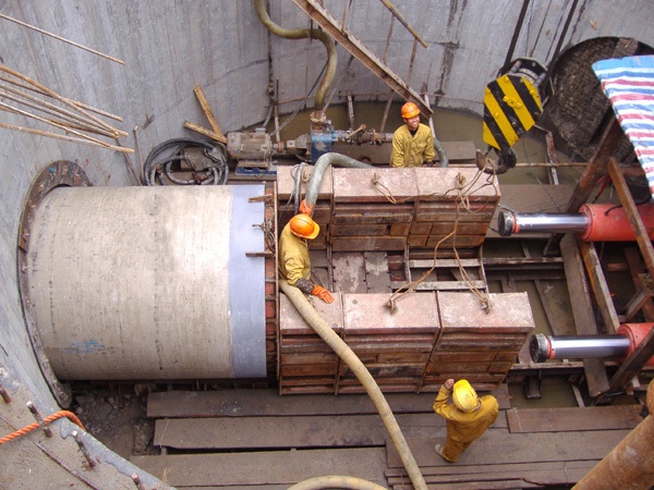 江滨东路新建的污水干管工程施工进展顺利,管道施工偏差均在规范允许范围内,而且很小,触变泥浆减阻效果好,管道实际顶力在3000KN左右。管道顶进速度很快,最快曾在20小时内顶进50m,单坑日进度不低于30m(而同流量砼管日单坑进度小于10m,钢管为15m)整体工程于2006年10月竣工并通过验收。
