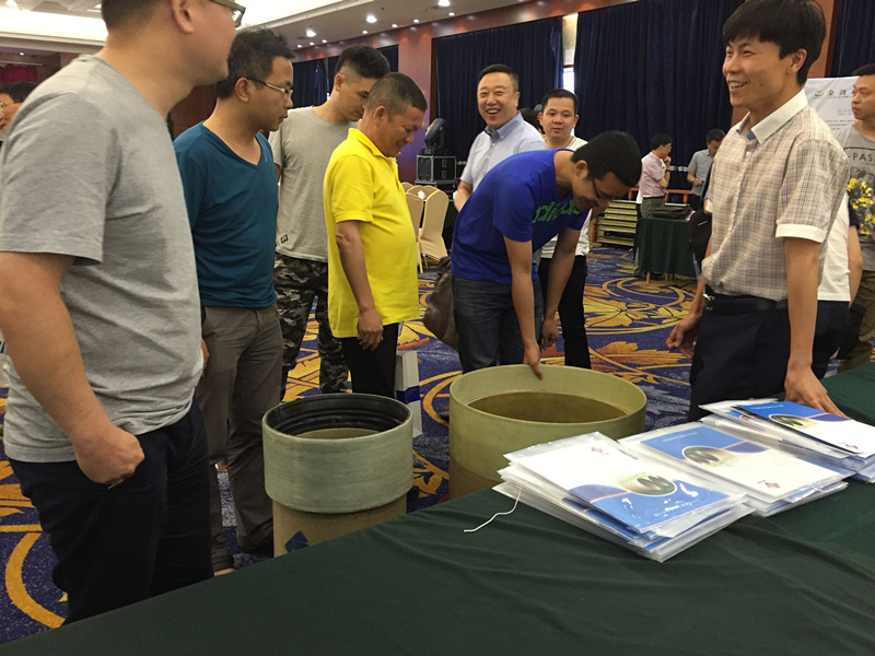 2016年5月27日下午14:00,“温州市给水排水专委会2016年度学术交流会”在温州市新南亚大酒店7楼召开,我公司董事长王伯华受邀为特约嘉宾,在会议上报告了离心浇铸玻璃钢夹砂管衬管修复技术和典型工程案例的介绍,会议末了的现场技术交流过程中,多位技术人员来我公司站台参观样品并了解我公司产品。