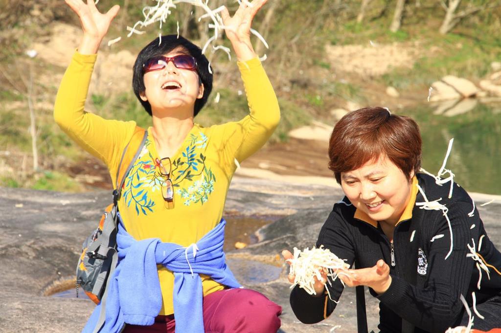 然后,同事们分为几队,爬山的爬山,登岩的登岩,早就忘了平日工作忙碌的疲惫,此刻已被喜悦的感觉所填满。