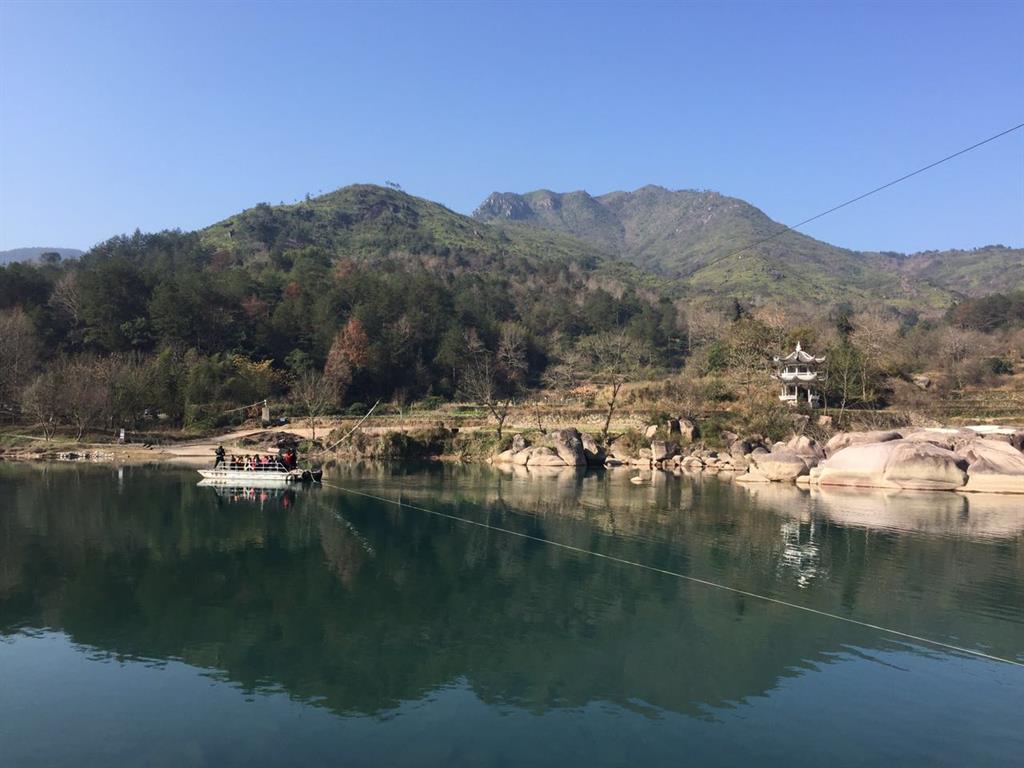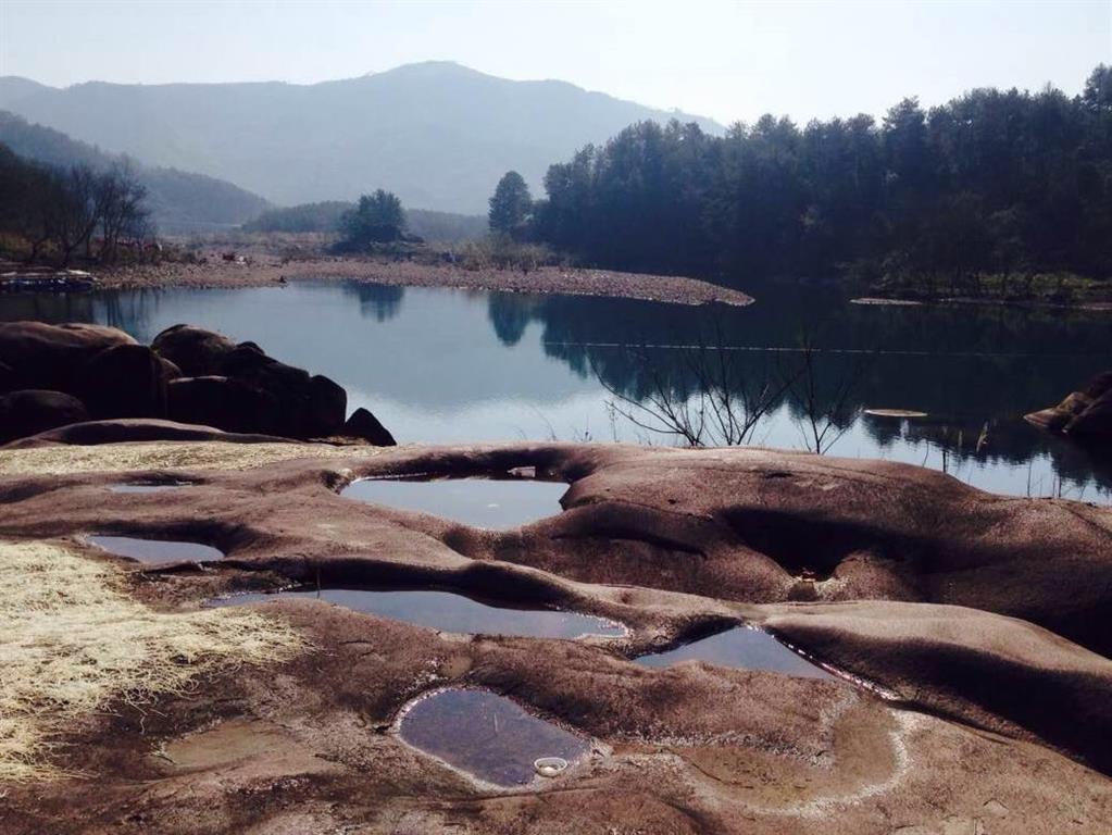九点钟同事们聚集齐了,陆续登上公司的大巴车,我靠着车窗一个位置坐下,大巴车一路飞驶,我望向车窗外,一路景色尽收眼底,感觉好惬意,一个小时后,到达目的地,“青龙湖”。同事们欢快的下了车,首先映入眼睑的是青山碧水,还有美丽的岩石,围绕在湖边的群山好美,湖水很清,放眼望去,水里倒映着山和树的倒影,给人一种心旷神怡的感觉,风景迤逦。同事们被这美丽的风景迷住了,一下车,就纷纷拿出手机,相机开始拍照,这感觉太美了,我贪婪的呼吸着这大自然的清新。